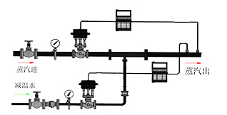 高壓過熱蒸汽進入設(shè)備前,需要經(jīng)過減溫減壓來滿足設(shè)備工藝的要求。減溫減壓裝置通過減壓閥調(diào)節(jié)蒸汽壓力,利用低溫水減溫器降低過熱蒸汽溫度,蒸汽通過減溫減壓后達到工藝要求的蒸汽指標。